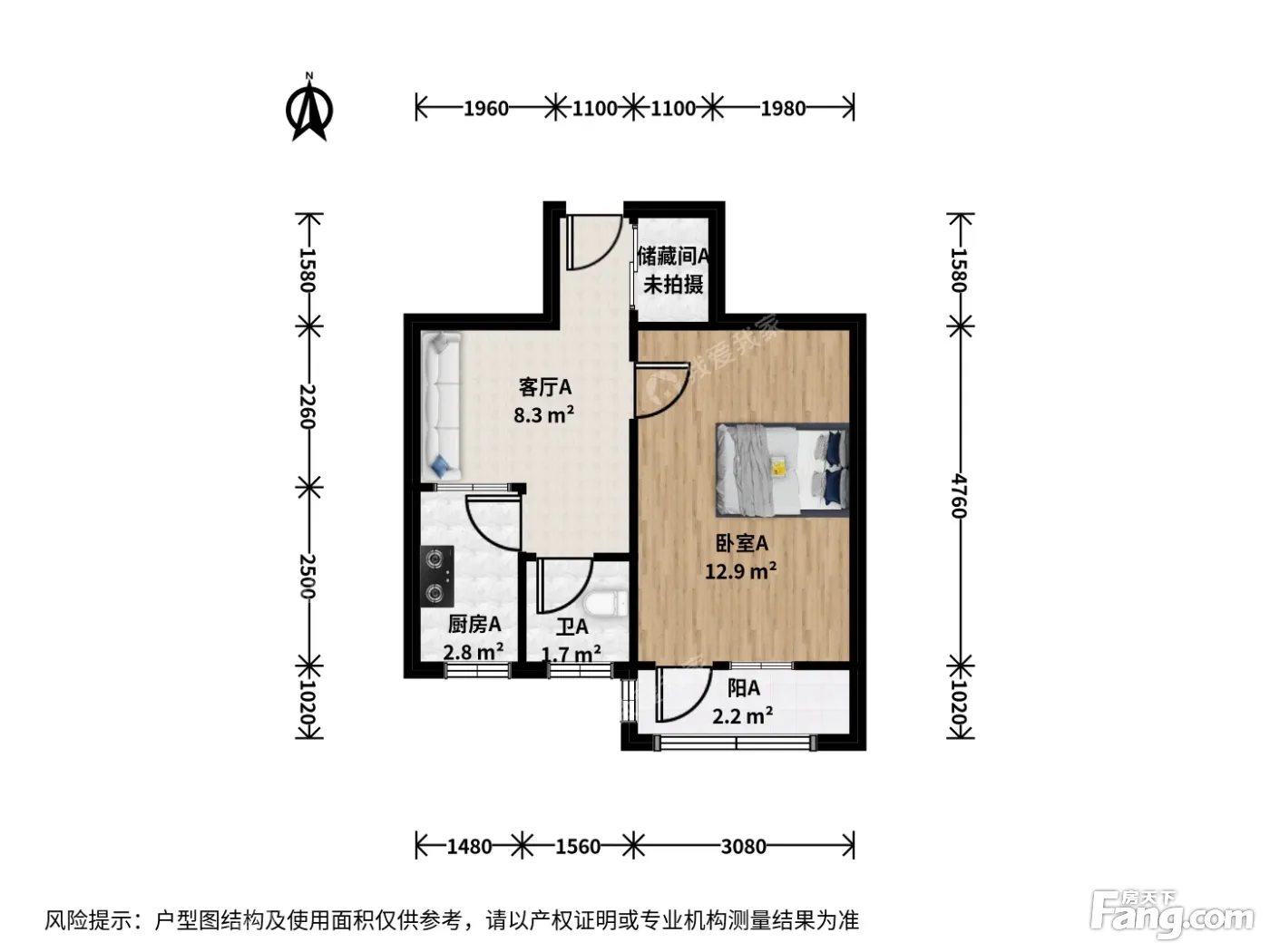 户型齐全,主打明厨,客厅朝南一居
