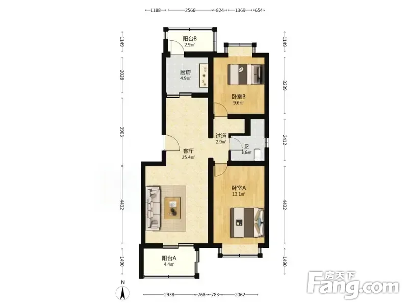 吕营嘉园A区 2室2厅 90.67平