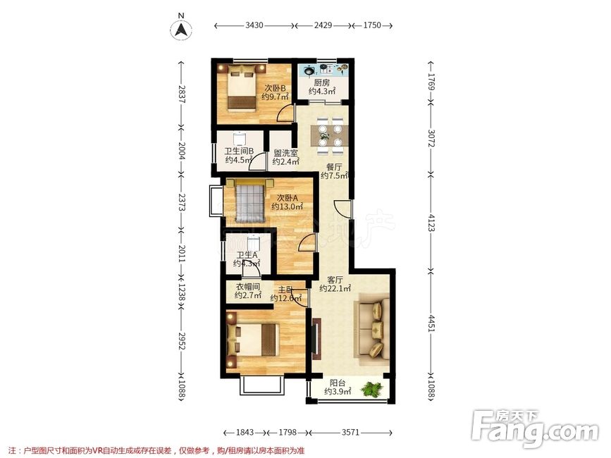 户型齐全,主打南北通透,全明格局,户型方正,采光充足三居