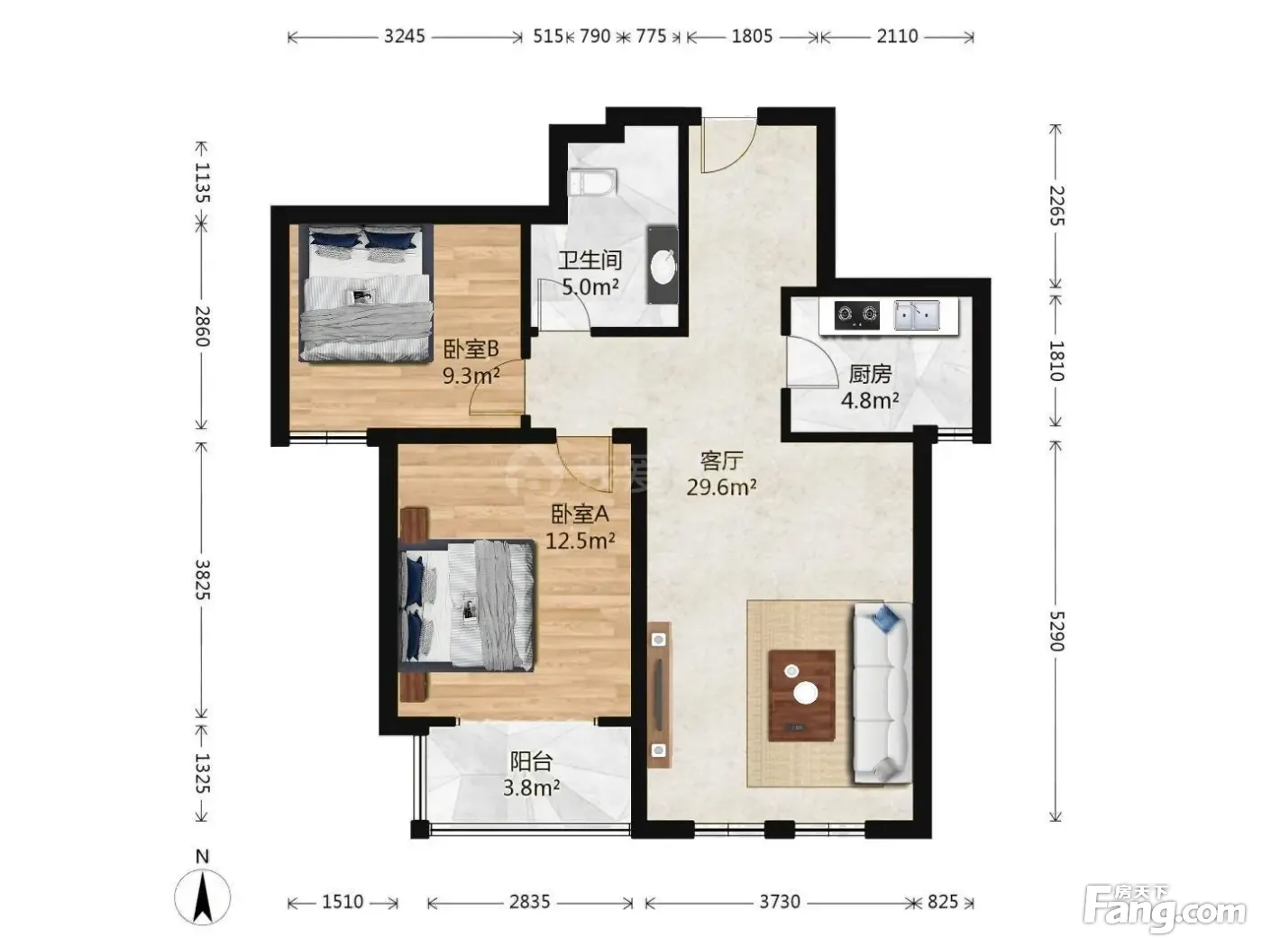 户型齐全,主打户型方正,明卫,明厨,客厅朝南,全明格局,双卧朝南三居