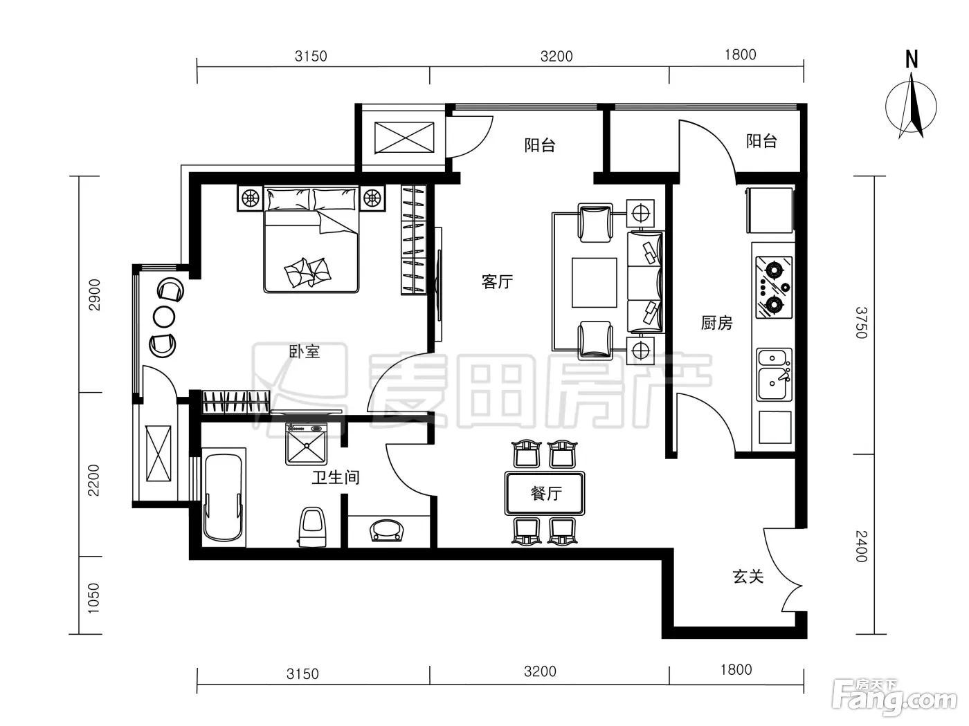 户型齐全,主打明厨,客厅朝南二居