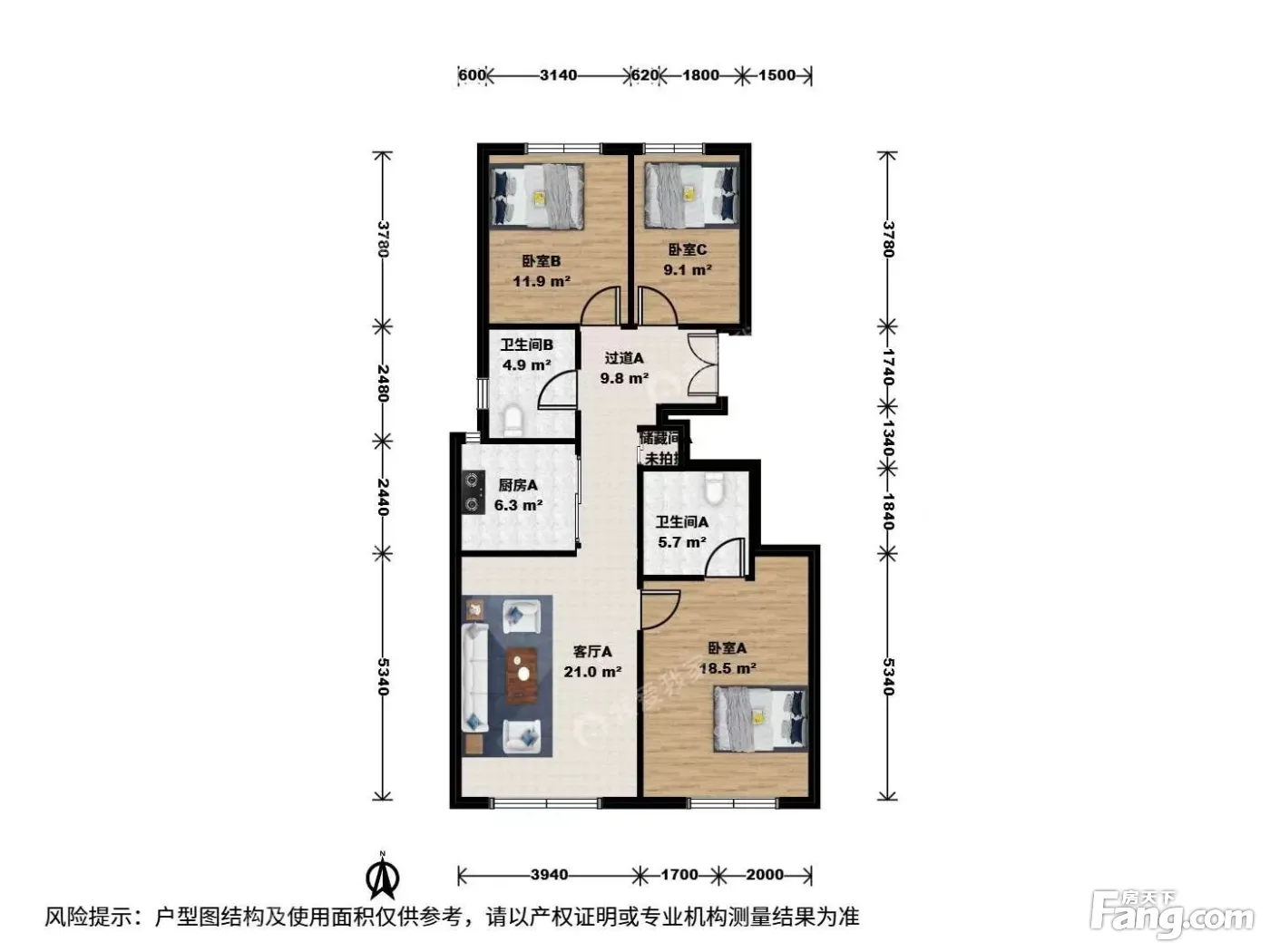 户型齐全,主打南北通透,客厅朝南三居