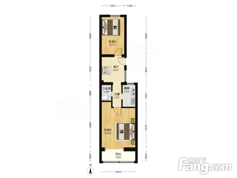富强东里 2室1厅 59.37平 南北通透户型方正采光无遮挡