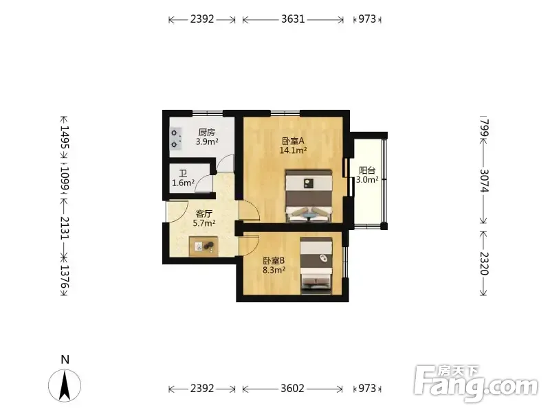 2室1厅1卫