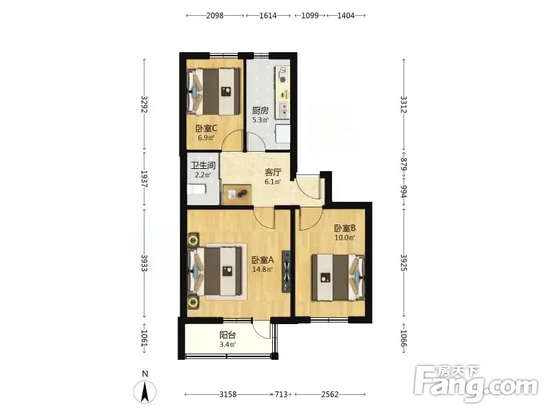 西井小区二区 3室1厅 62.9平