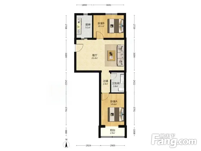 杨庄中区 2室1厅 74.77平