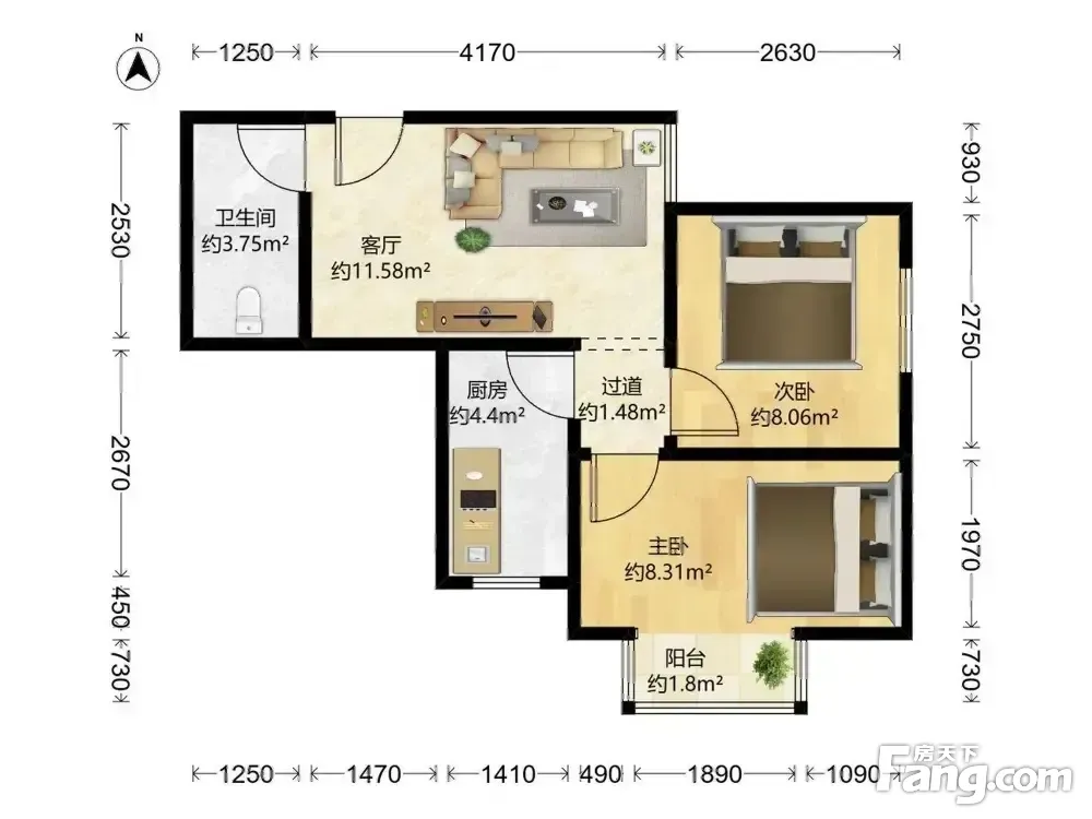 2室1厅1卫