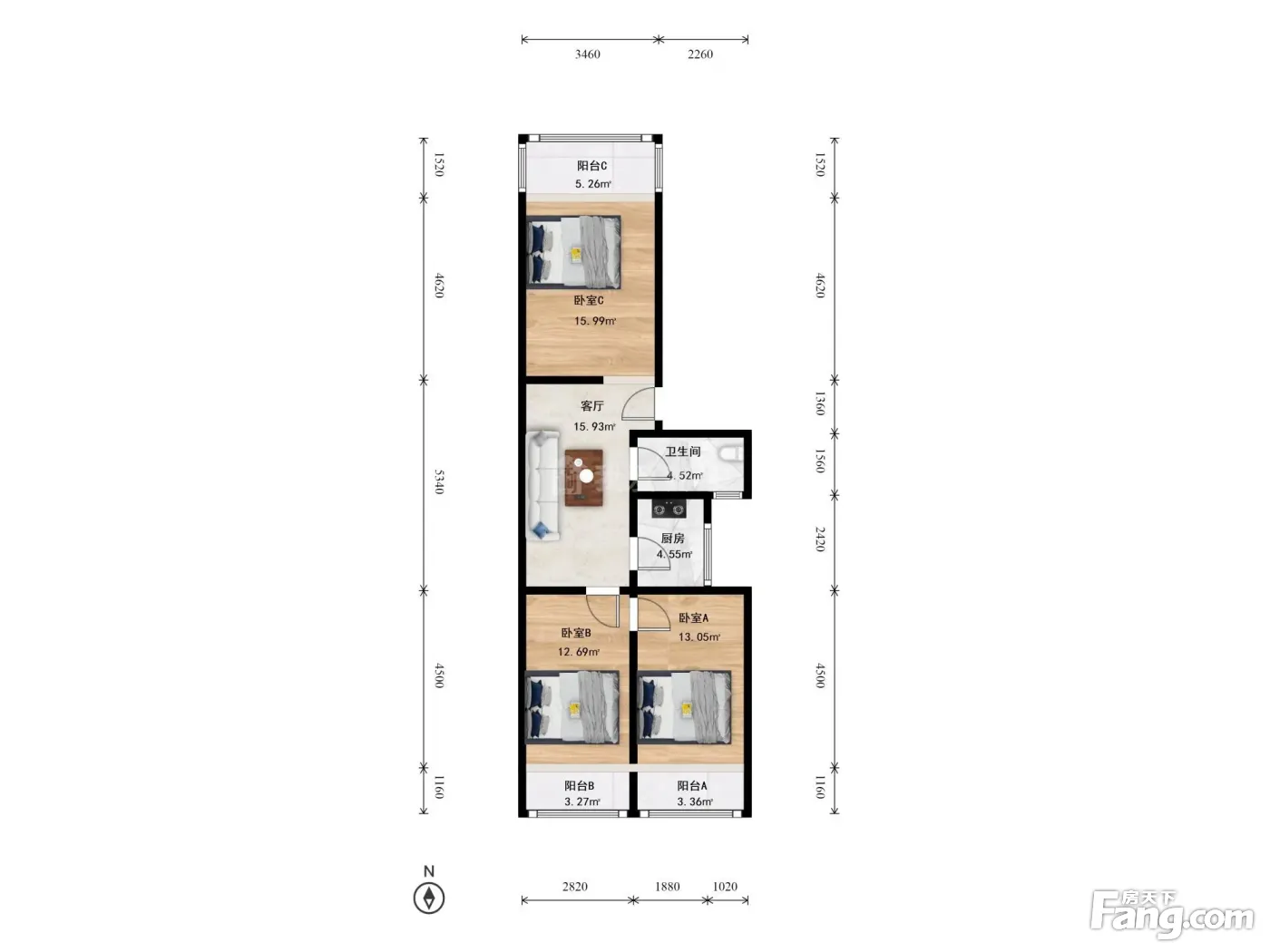 东直门 南北三居室 户型方正 全明格局