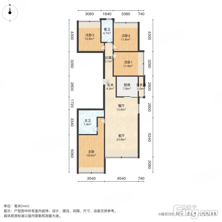 户型齐全,主打客厅朝南三居