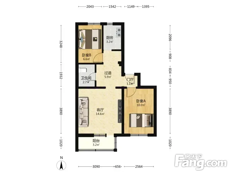 (客户0)老山东里 3室1厅 61.6平南北通透 有电梯