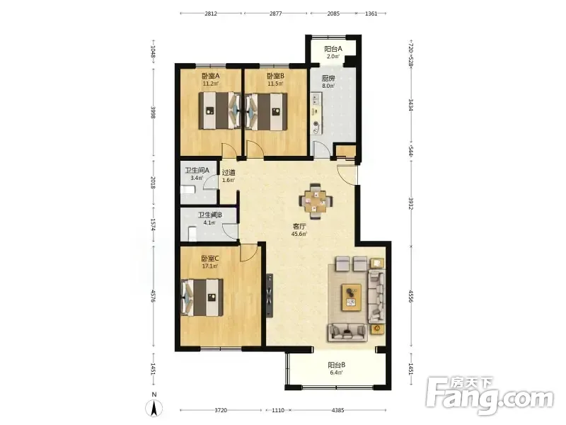 户型齐全,主打明卫,独立衣帽间,客厅朝南三居