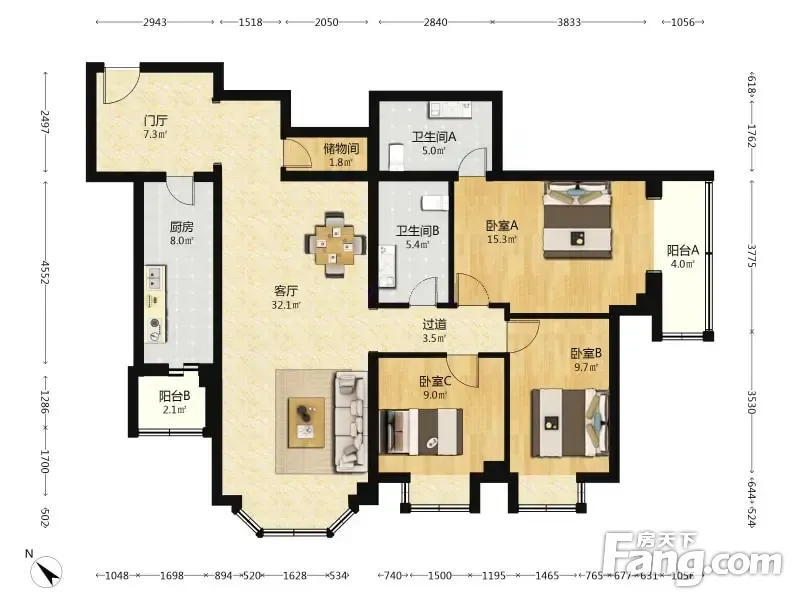 3室1厅2卫