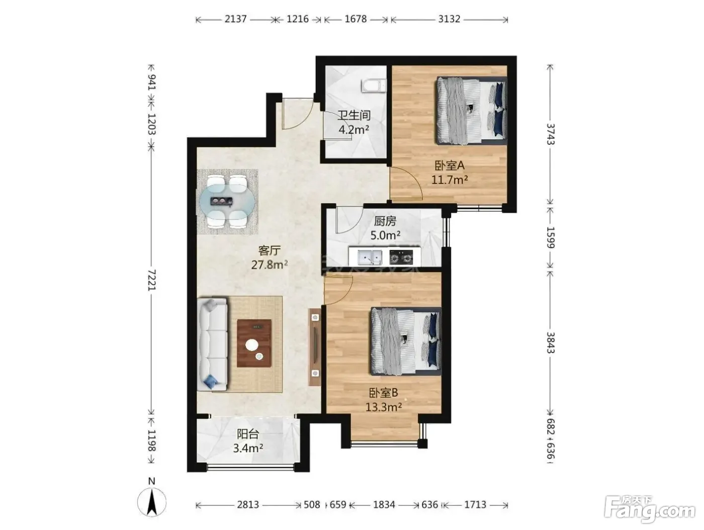 户型齐全,主打明厨,双卧朝南,主卧朝南二居