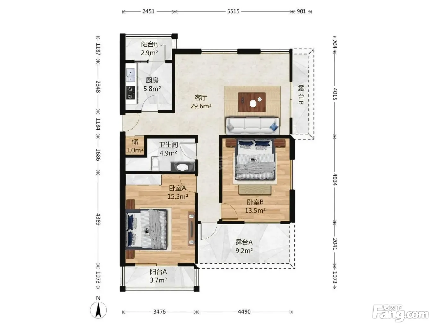 户型齐全,主打户型方正,双阳台,主卧朝南二居
