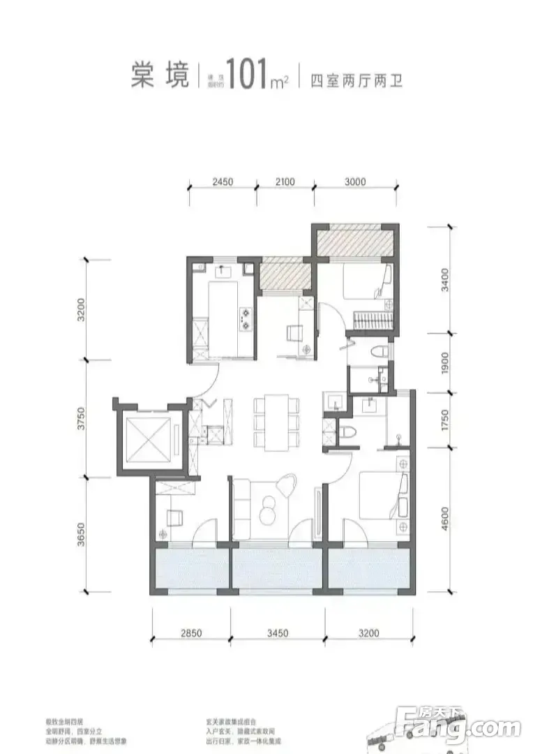 四代住宅朝棠揽阅 101平四居 南北向精装修 视野无遮挡