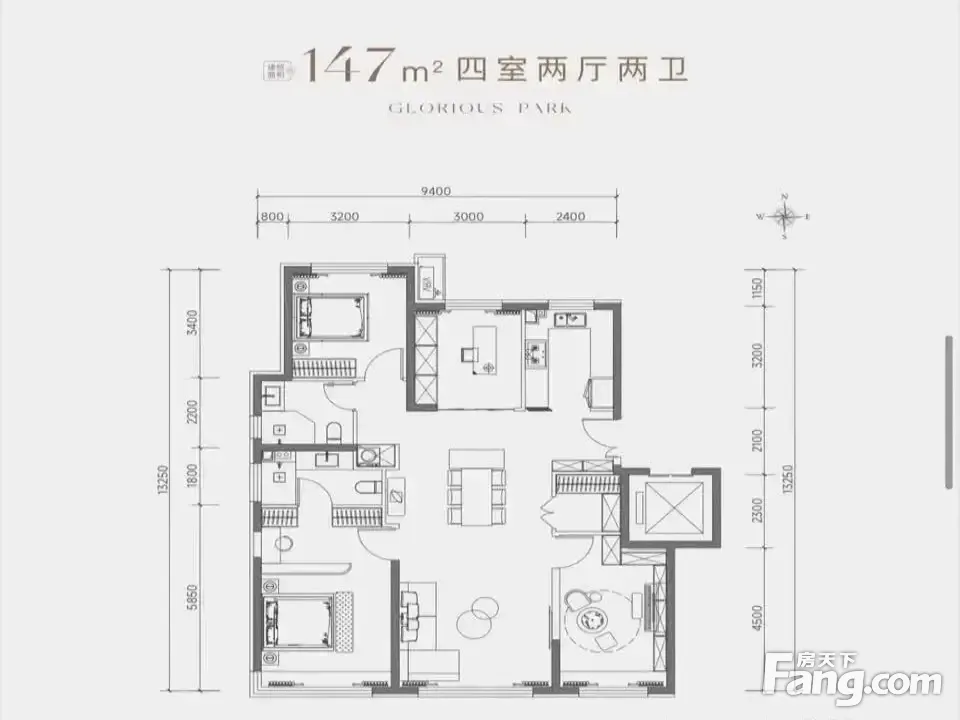 户型齐全,主打南北通透,全明格局,户型方正,动静分离四居