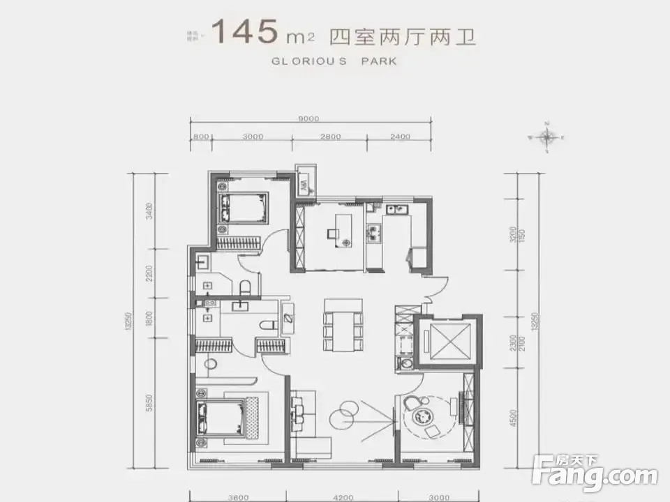 建筑面积约145㎡4居//152㎡四居 产品推荐: 4.5巨幕面宽,约13.1米南向采光 主卧套房设计,仪式感拉满 U形厨房,合理分区 建筑面积约124㎡ 四室两厅两卫 9窗全明户型 ,通透采光兼顾 约10.1 m南向三面宽 LDK一体化设计,功能通透合理 入门双玄关,独立家政间,功能齐备。