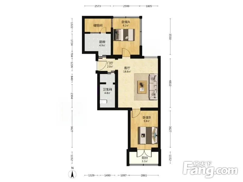 户型齐全,主打户型方正,明卫,客厅朝南,双阳台二居