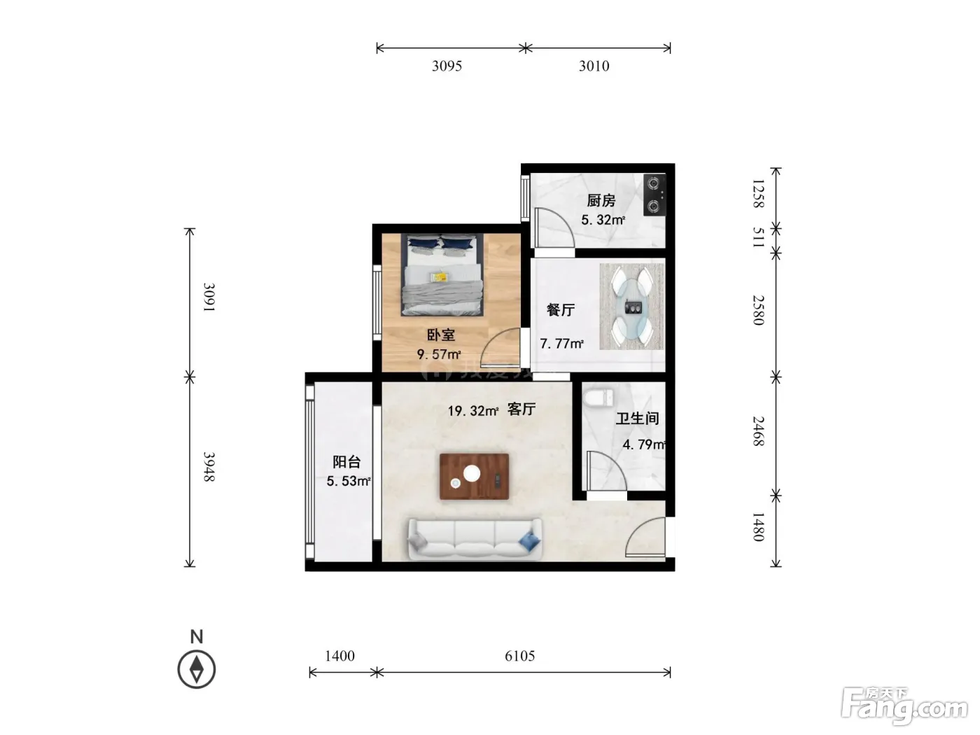 1室2厅1卫