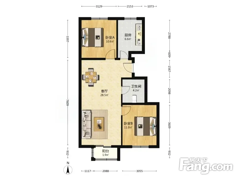 户型齐全,主打户型方正,明厨,客厅朝南二居