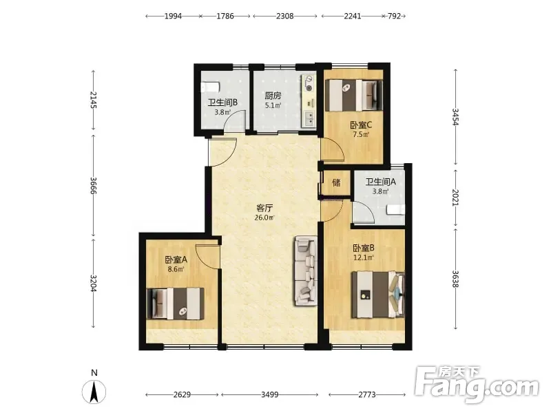 3室1厅2卫