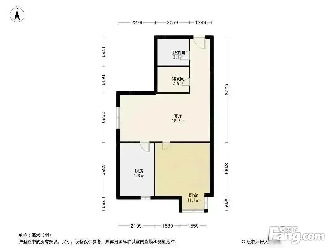 房子属于正规的一居室,1室1厅1厨1卫,户型方正,采光通风都棒,适合家庭居住,属于小区难得出来的一套好户型