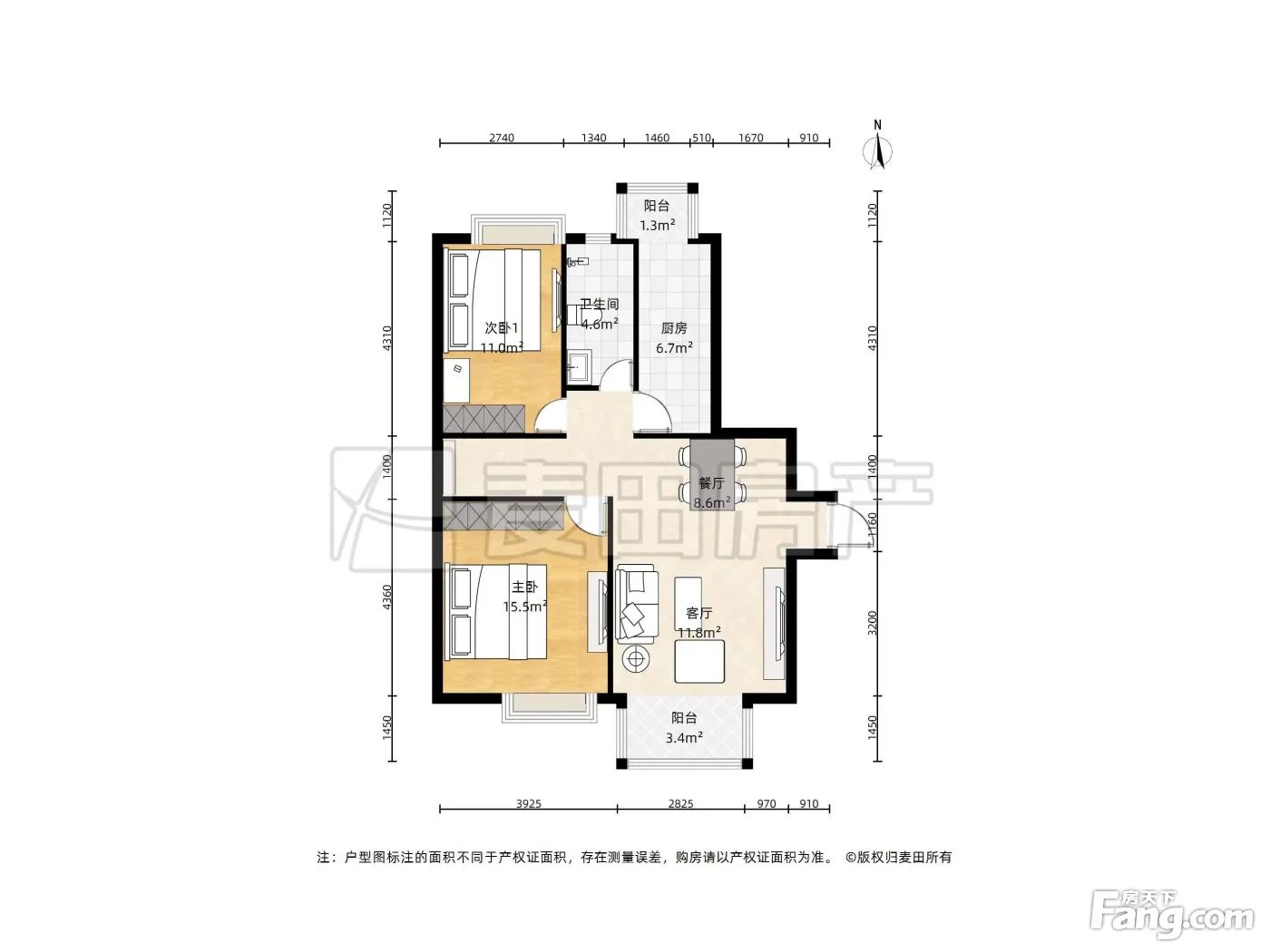 户型齐全,主打户型方正,明厨,客厅朝南,主卧朝南二居