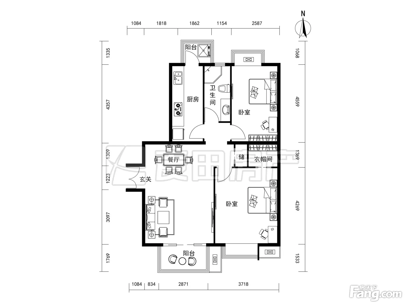 户型齐全,主打户型方正,明厨,客厅朝南,主卧朝南二居