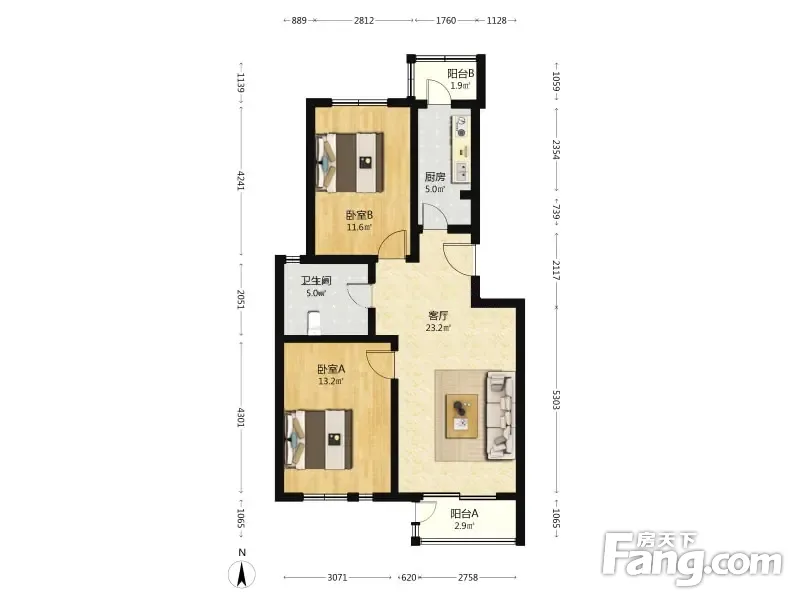 五福家园 2室1厅 82.04平