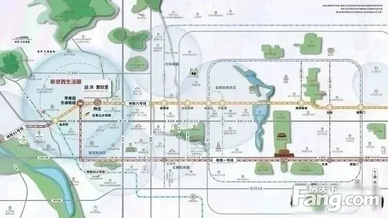 交通配套:三横:阜石路、长安街、永引渠南路;三纵:西五环、西四环、西三环;地铁:6号线杨庄站 商业配套:项目内垂直商业与国内商业顾问公司盈石联手打造,定位时尚、潮流、注重精致与品质,为您定制更加舒适的生活状态。 医疗配套:武警总医院、301医院、302医院这样三甲医院,驱车即可到达!还有朝阳医院京西院,空军总医院等。 周边环境:人文历史、森林公园环绕城市生态宜居之地(法海寺、八大处等历史文化古迹,烘托区域人文氛围,五大森林公园环绕,畅怀自然生态,丰盛的人文与自然资源。