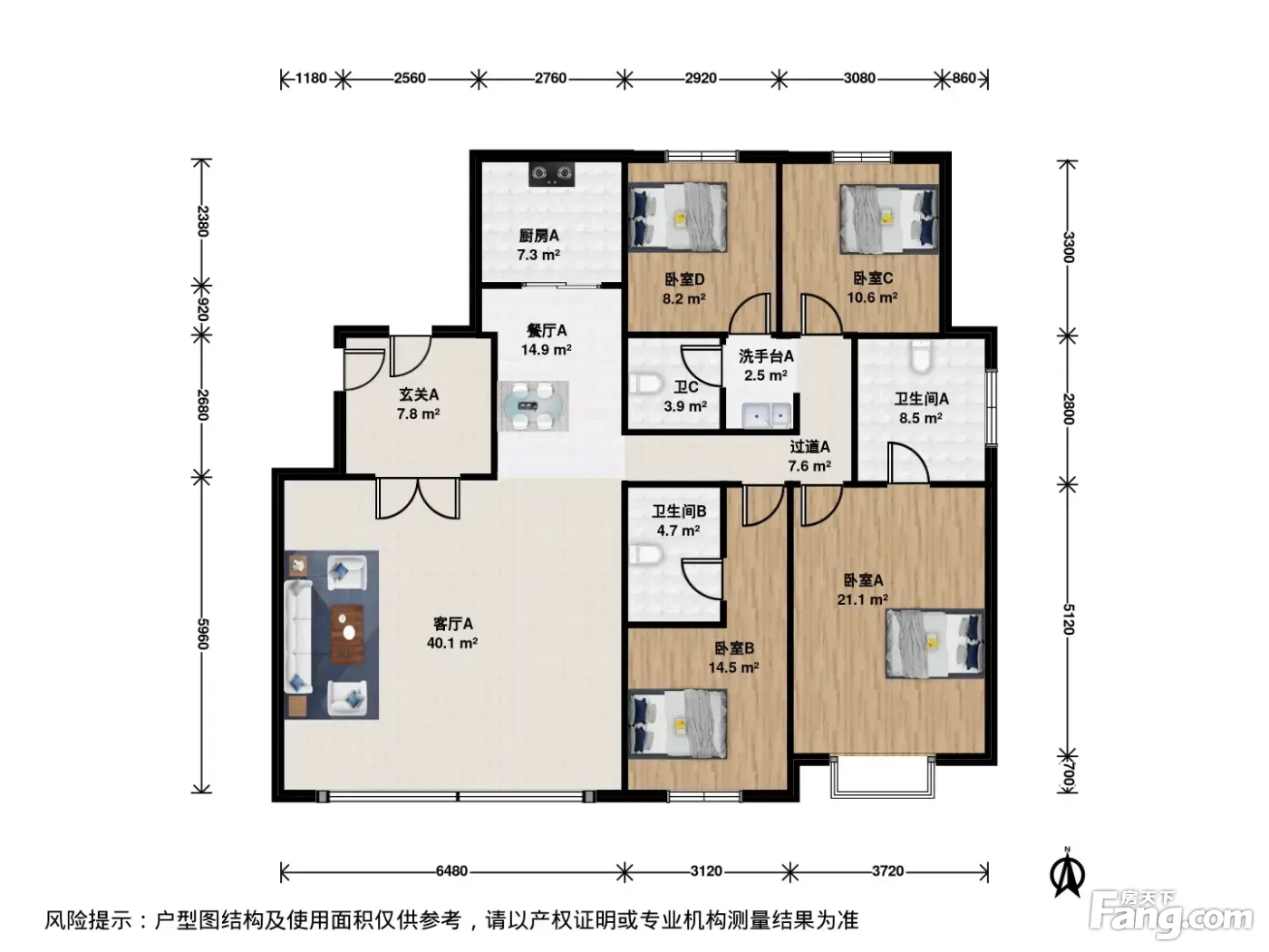 户型齐全,主打南北通透,客厅朝南四居