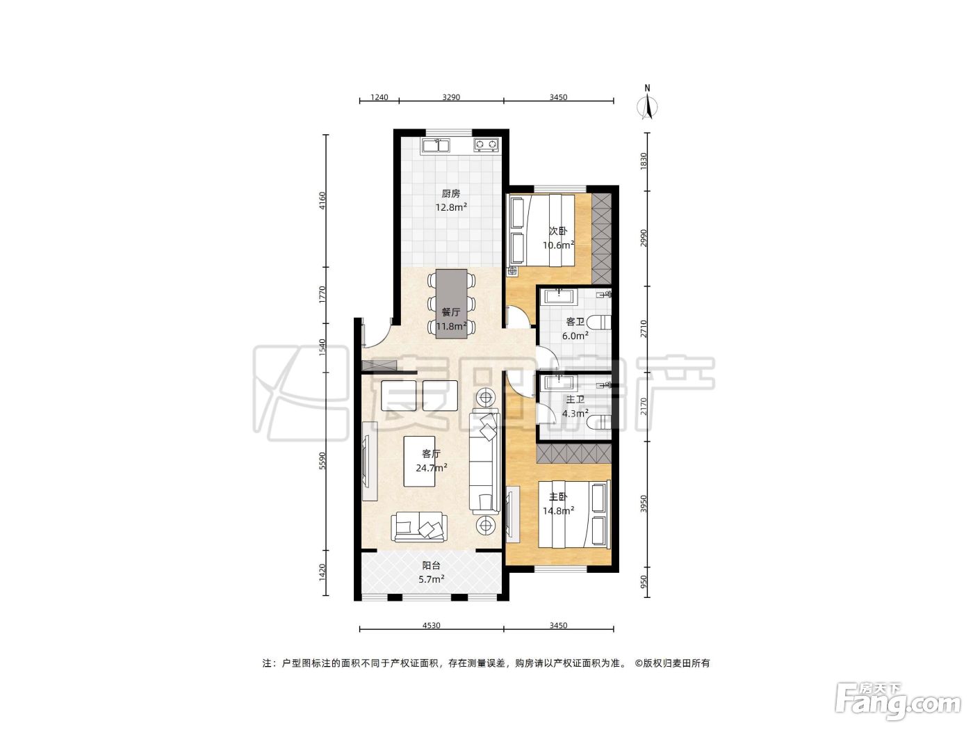 户型齐全,主打户型方正,明厨,独立衣帽间,主卧朝南二居