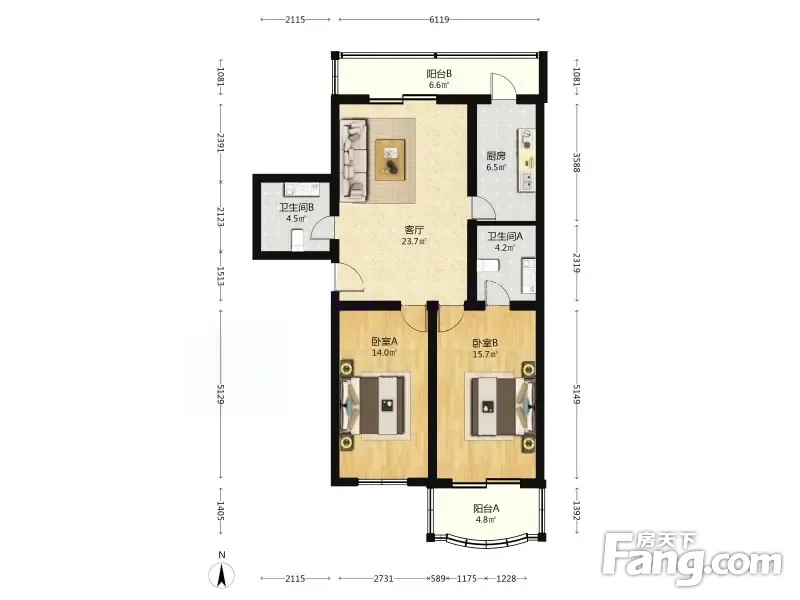 2室1厅2卫