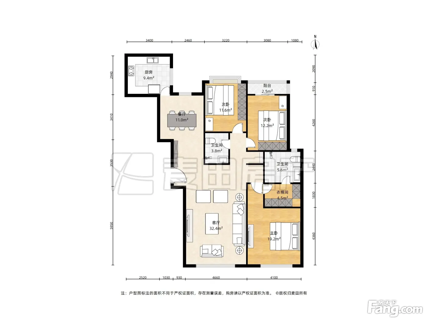 户型齐全,主打户型方正,独立衣帽间,明卫,客厅朝南三居