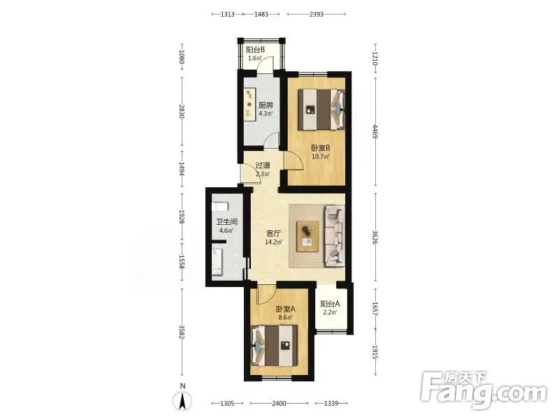 双河南里 2室1厅 66.91平 明厅朝南采光充足生活配套齐