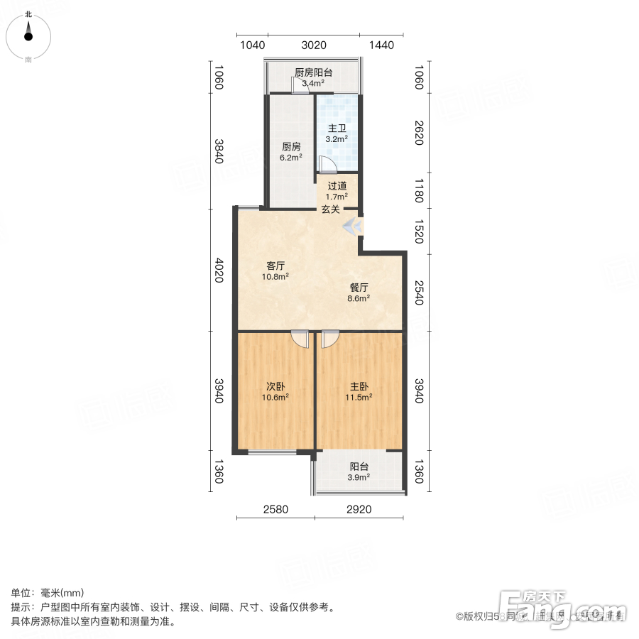 户型齐全,主打客厅朝南,双阳台,主卧朝南二居
