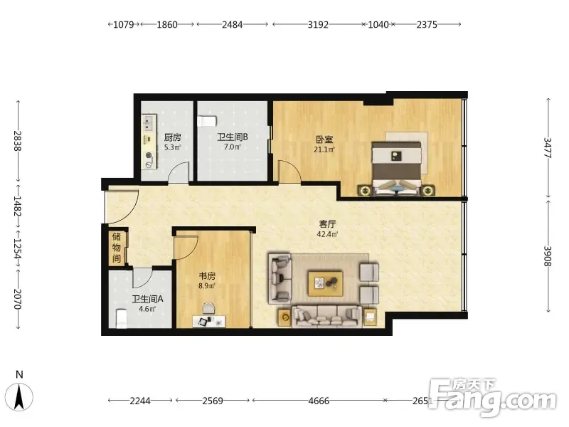 户型齐全,主打客厅朝南二居