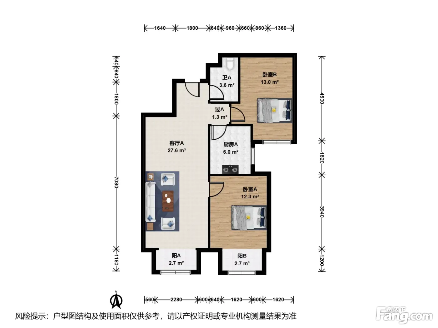 户型齐全,主打南北通透,客厅朝南二居