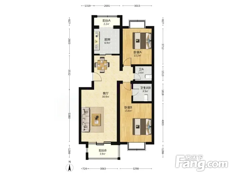 2室1厅2卫