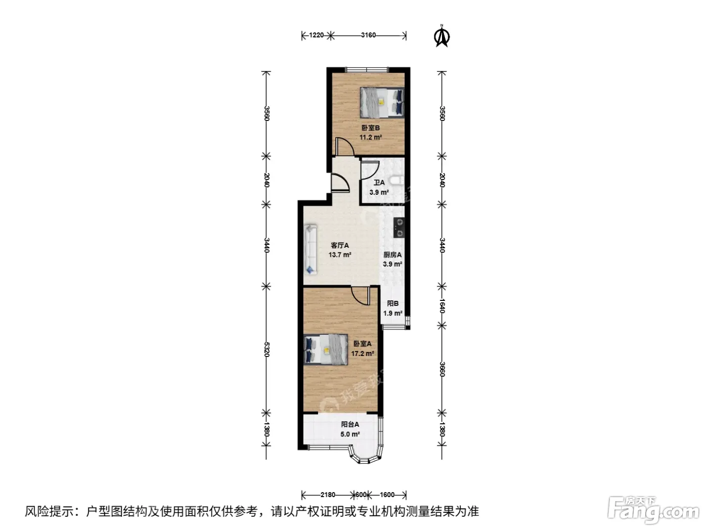 户型介绍:此房为南北通透大两居,主卧室朝南带大阳台,次卧室朝北,采光很好,户型方正,无浪费空间,适合一家人居住。维护人海峰