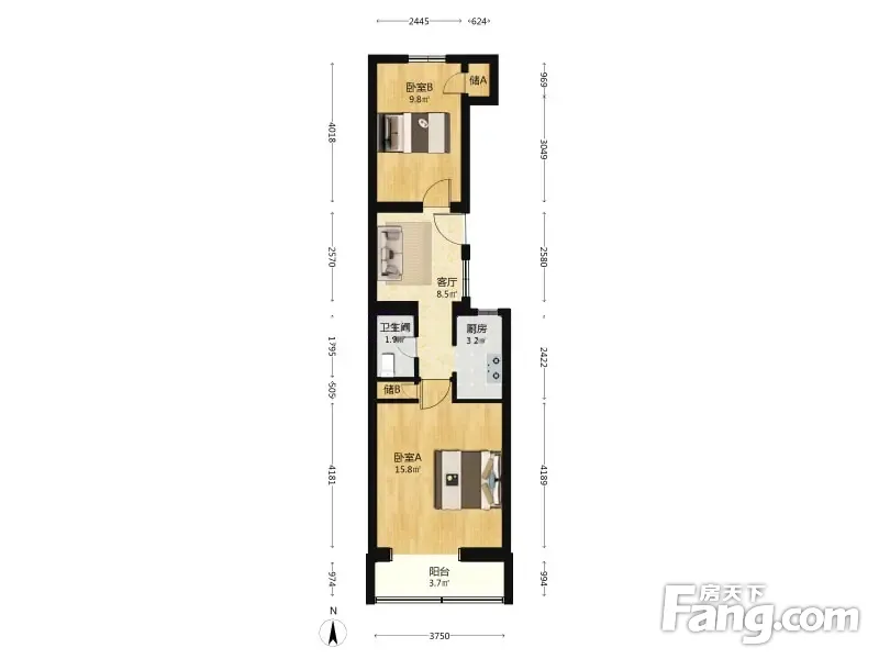 车站北里 2室1厅 59平