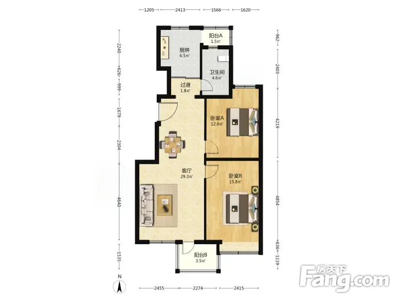 时代龙和大道 2室1厅 100.35平 南北通透户型好无遮挡