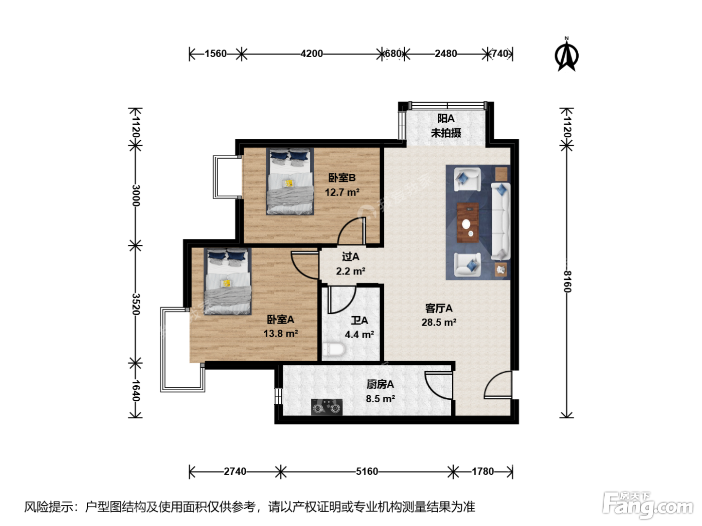 户型齐全,主打客厅朝南二居