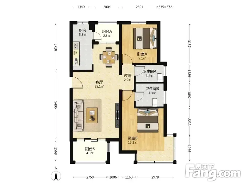 2室1厅2卫