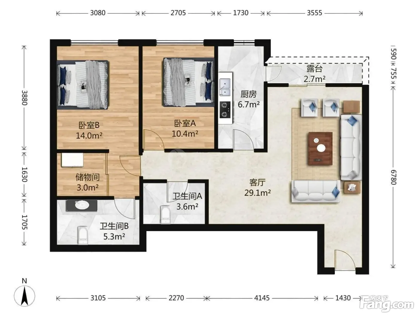 2室1厅2卫