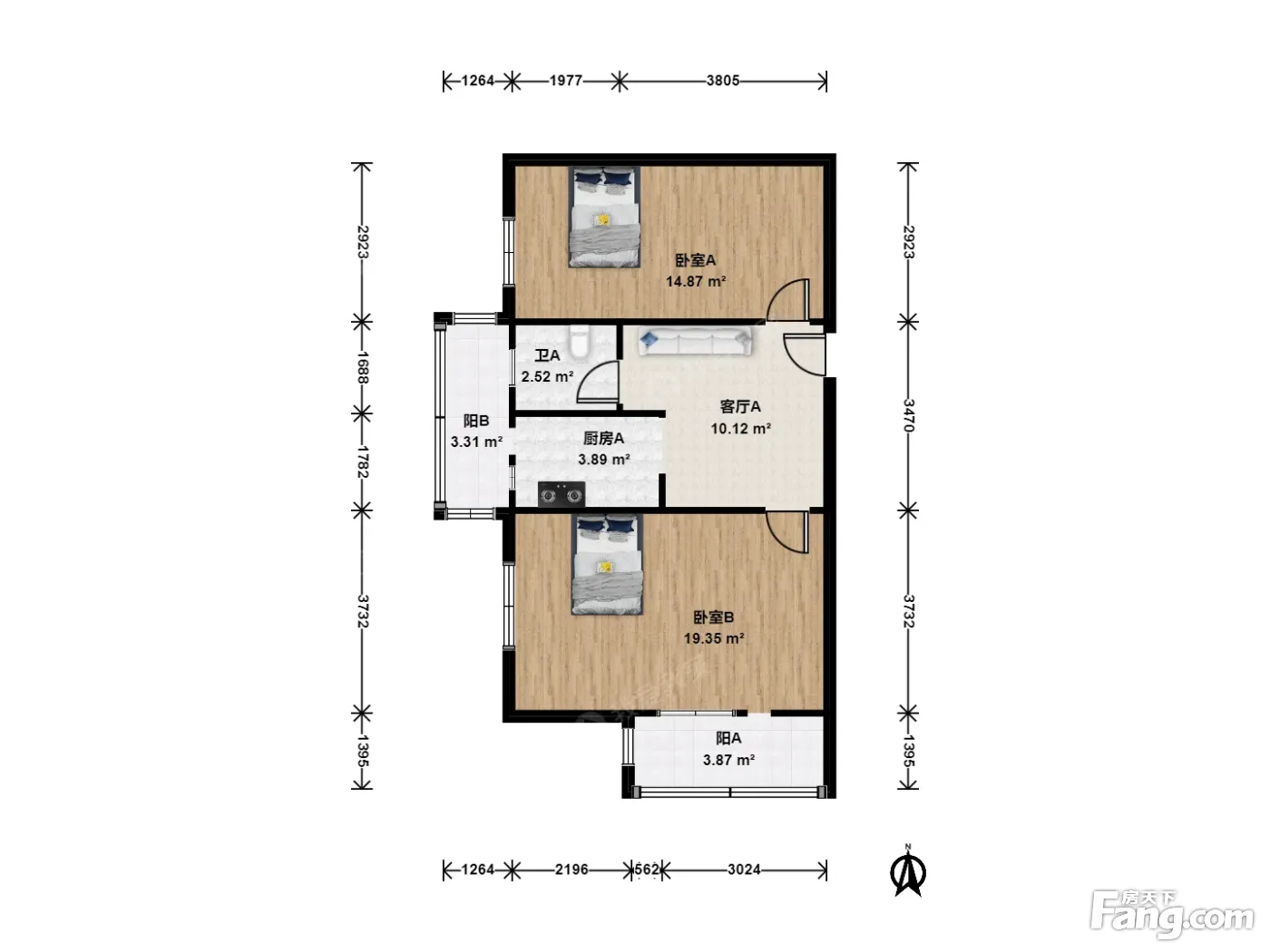 户型齐全,主打明厨,客厅朝南二居
