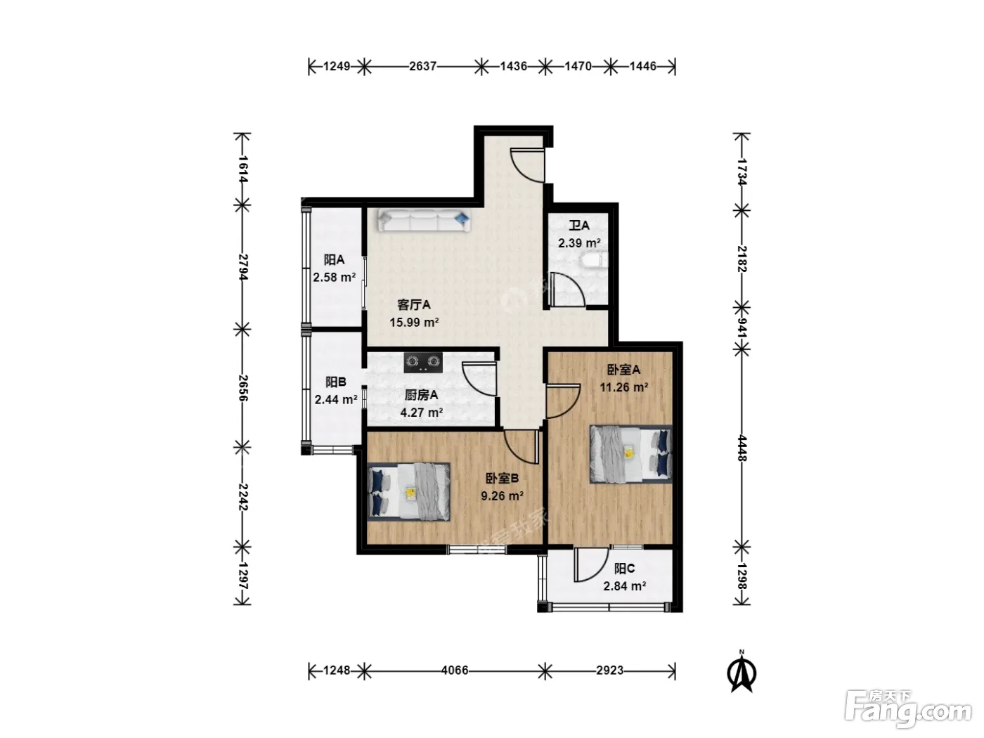 户型齐全,主打明卫,客厅朝南,双阳台二居