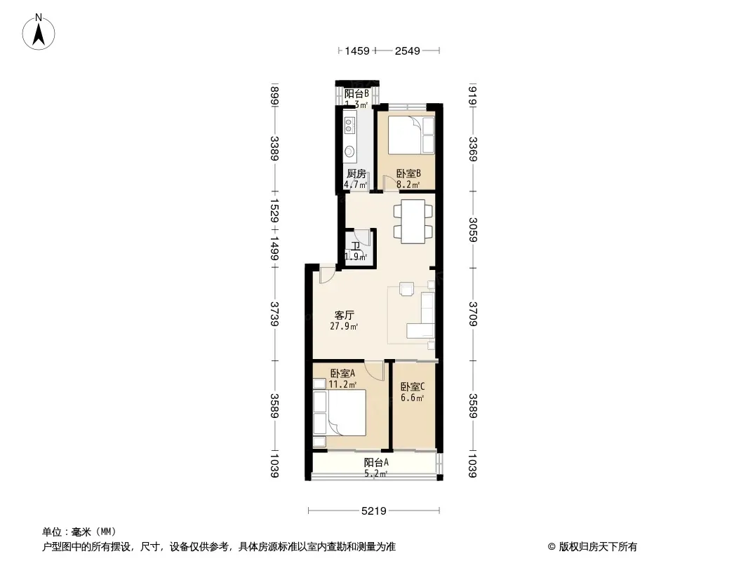 户型齐全,主打主卧朝南三居