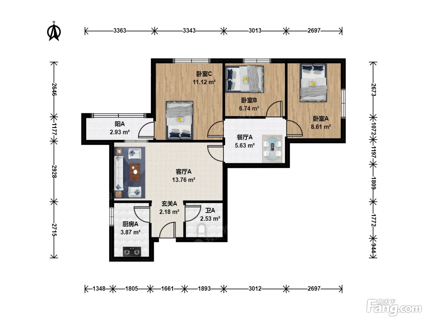 芍药居 3室2厅 东北