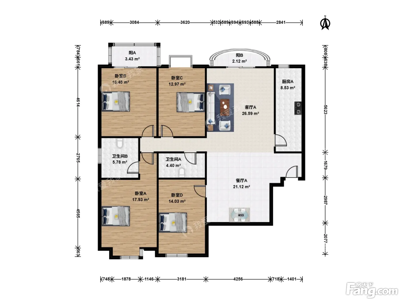 户型介绍:此房户型为4室2厅2卫,建筑面积为166.65平米,朝向为南北。房子是2001年建成,两间卧室朝南,客厅朝北,主卧带独立卫生间,一间卧室朝北,餐厅朝北带阳台。南北通透,双阳台,格局方正,居住舒适度高